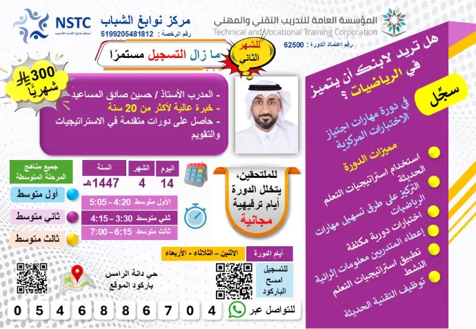 دورة مادة الرياضيات للمرحلة المتوسطة - ضمن دورة مهارات اجتياز الاختبارات المركزية