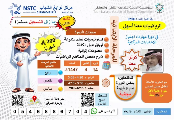 دورة مادة الرياضيات للمرحلة الابتدائية- ضمن دورة مهارات اجتياز الاختبارات المركزية