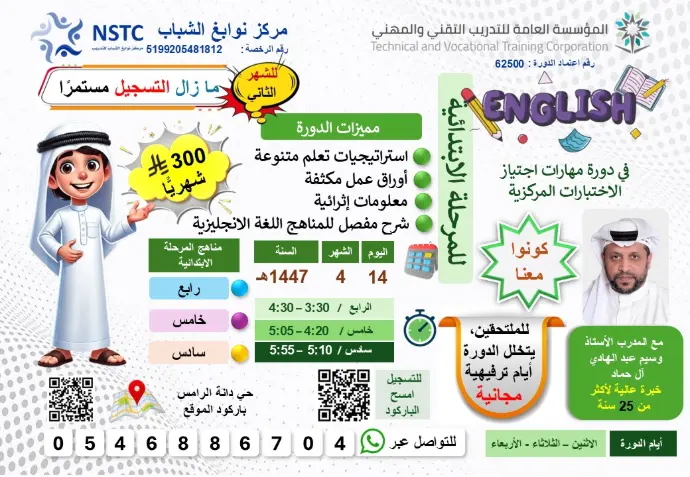 دورة مادة اللغة الانجليزية للمرحلة الابتدائية- ضمن دورة مهارات اجتياز الاختبارات المركزية