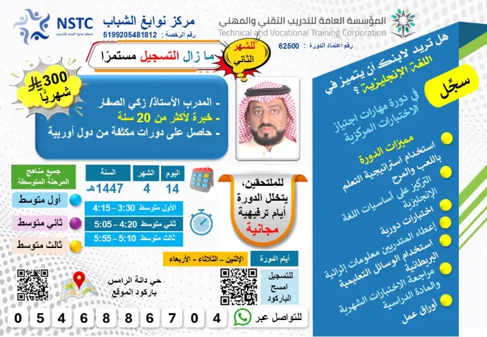 دورة مادة اللغة الانجليزية للمرحلة المتوسطة- ضمن دورة مهارات اجتياز الاختبارات المركزية